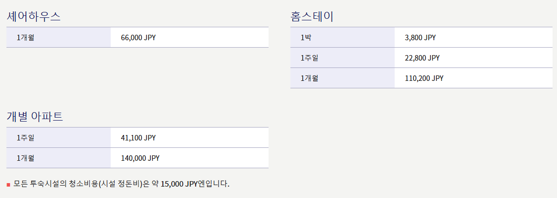 | 셰어하우스 | 홈스테이 | 개별아파트 |